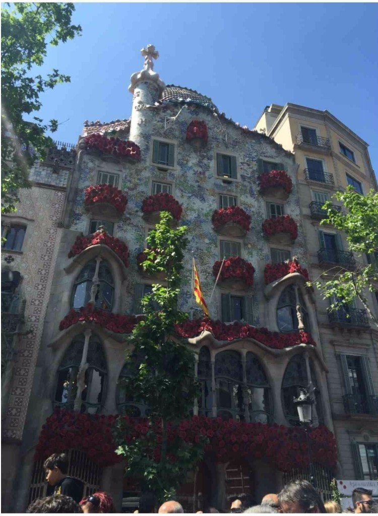 Sempre durante la giornata camminando Lungo Passeig de Gràcia, oltre alle bancarelle di rose e di libri, si può ammirare quella meraviglia di Casa Batlló, il famoso capolavoro di Gaudì. La leggenda di Sant Jordi e il drago rivive sulla facciata dell’edificio con il dragone e con le rose intrecciate (Gaudì infatti si ispirò alla storia di Sant Jordi).