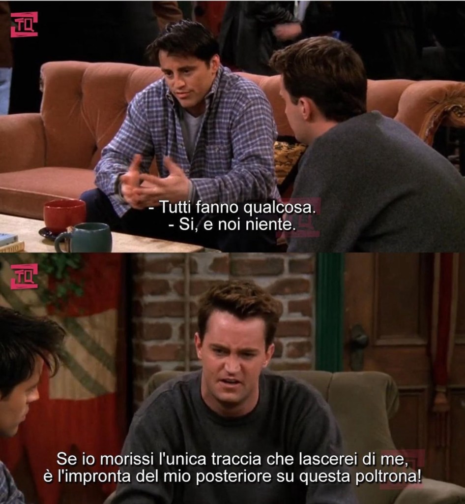 Friends è la serie TV con cui intere generazioni, chi più chi meno, sono cresciute, hanno sorriso, riso, preso spunto, si sono fatte influenzare nel look, hanno sgocciolato quale lacrimuccia e passato ore serene. Siamo tra quest*. E le lacrime sono anche le nostre. Sembra quasi di stare assistendo alla morte definitiva degli anni Novanta. In questi ultimi giorni, queste intere generazioni sono in lutto per la scomparsa prematura (aveva solo 54 anni) di Matthew Perry, attore diventato famoso per il ruolo dell’affascinante e sarcastico Chandler Bing nell’intramontabile sit-com televisiva Friends.