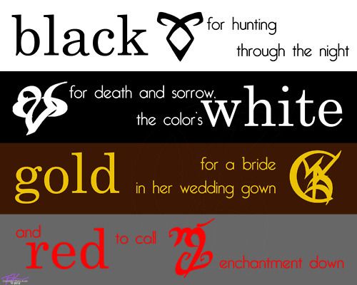 Una particolarità (non la considero fondamentale da considerarla concetto) all’interno di questa immensa saga è rappresentata dai colori. Nello specifico, ci sono quattro colori che non sono solo una tradizione, ma i pilastri visivi di una vita dedicata al sacrificio. Dalla nascita alla morte, ogni Shadowhunter sa esattamente cosa indossare per onorare il proprio destino.