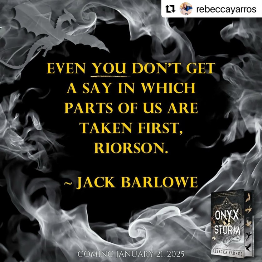 Il tempo pare che stia passando molto lentamente. Da quando è stata rivelata la data di uscita, i lettori di tutto il mondo sono in trepidante attesa. Per farci soffrire ancora di più sono stati pubblicati degli estratti che non fanno altro che aumentare l’hype. La scrittrice considera questo romanzo il migliore mai scritto fino ad ora della serie e dalle anticipazioni non possiamo che confermare. Il primo estratto è stato pubblicato qualche mese fa dalla stessa autrice, invece il secondo è stato pubblicato l’11 novembre sulla rivista Cosmopolitan. Il terzo romanzo della serie The Empyrean Onyx Storm, di Rebecca Yarros, sarà pubblicato il 21 gennaio 2025 da Red Tower Books. Il romanzo arriverà in Italia in contemporanea per la casa editrice Sperling & Kupfer. Non vediamo davvero l’ora di avere tra le mani questo romanzo. Ed è già preordinabile.