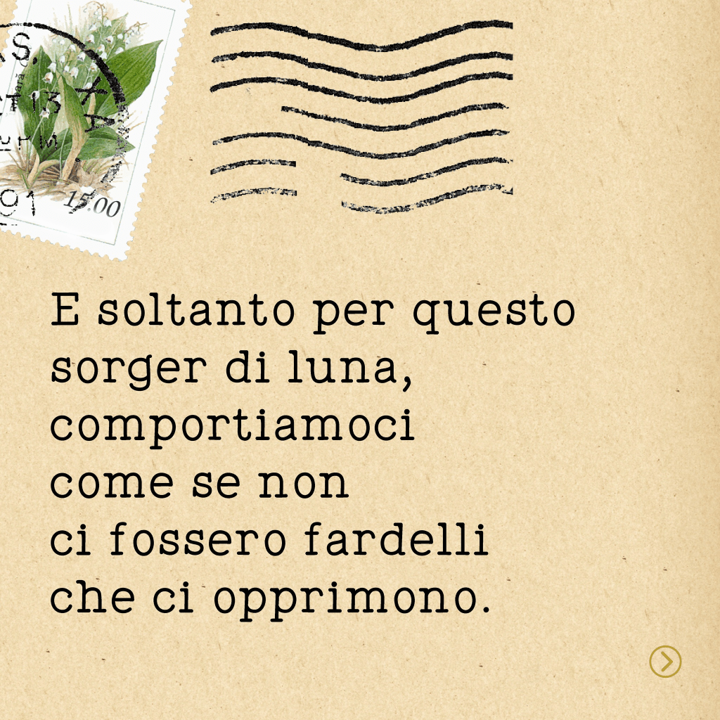 «Sono soltanto una strofa ispirata dal tuo ritornello, e ti seguirò fino alla fine, quando l’isola prenderà le mie ossa e il mio nome non sarà altro che un ricordo su una lapide accanto alla tua».
